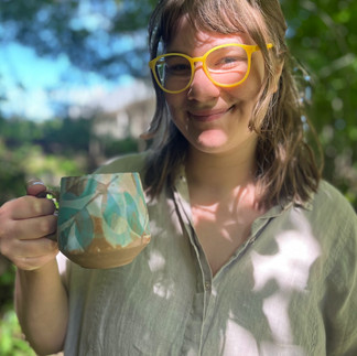 My work begins with the observation and documentation of the flora and fauna I encounter in my daily life. I develop these ideas in mixed-media sketchbooks, using watercolours, collage, pastels, and pen to create loose, colourful, and playful imagery. From there, I move into the clay studio, where each ceramic piece takes form. I throw and sculpt my vessels, altering and personalizing each one with details such as my fingerprints embedded in the surface. The imagery and narratives developed in my sketchbooks guide the stories I translate onto the clay vessels.